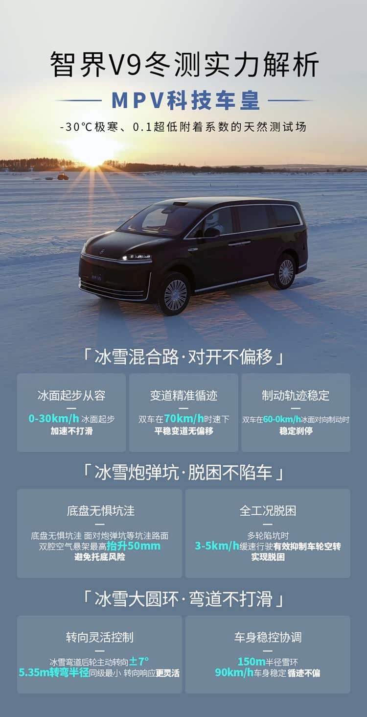 在大大皆东谈主印象中,MPV不绝和“操控难”划上等号。但近日 智界V9(参数|询价)发布的极限冰雪测试视频,透顶突破了刻板印象。动作鸿蒙智行旗下首款旗舰MPV,新车在零下极寒环境中,直面冰雪混杂路、冰雪炮弹坑、冰雪大圆环三大极限挑战。不仅初度曝光了后轮转向功能的搭载,更凭借途灵智能底盘平台的全域协同智力,展现出远超传统MPV的操控闲隙性与安全实力。