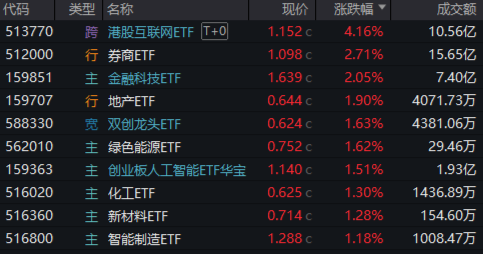 A股阛阓全天震憾反弹,创业板指领涨1.23%,两市放量成交1.94万亿元。盘面上,阛阓热门秩序活跃,个股普涨,全阛阓超4200只个股高涨。从板块来看,券商股尾盘异动拉升,科技成长股多量回暖!