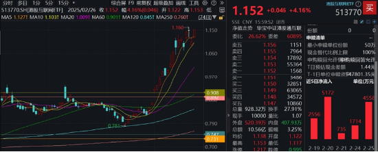 周三(2月26日),港股透彻爆发,恒生科技指数涨4.47%,盘中冲破6000点!科网龙头强势领涨,小米集团-W涨5.83%体育游戏app平台,股价站上56港元再立异高,重仓港股互联网龙头的港股互联网ETF(513770)场内收涨4.16%,单日成交额超10亿元,标的指数本轮累计涨幅高达46.09%,强势领跑港股本轮行情!