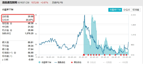 值得防卫的是,尽管前期已积蓄可不雅涨幅,但中证港股通互联网指数市盈率PE仅25.68倍,仍位于指数上市以来20.47%分位点的低位水平。