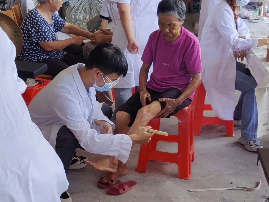 行径现场厌烦柔顺而强烈。突击队师生充分融会专科特长,开展了艾灸调整、中医保健推拿、正骨、解暑爱心汤饮、血压测量及健康学问科普等多个样子,每一项职业齐受到了村民们的宽饶和怜爱。老东说念主们体验完艾灸与推拿后舒展的眉头,厚爱凝听保健学问时专注的心境以及村民们测完血压后兴隆的笑颜,齐是对本次志愿职业最佳的认同。