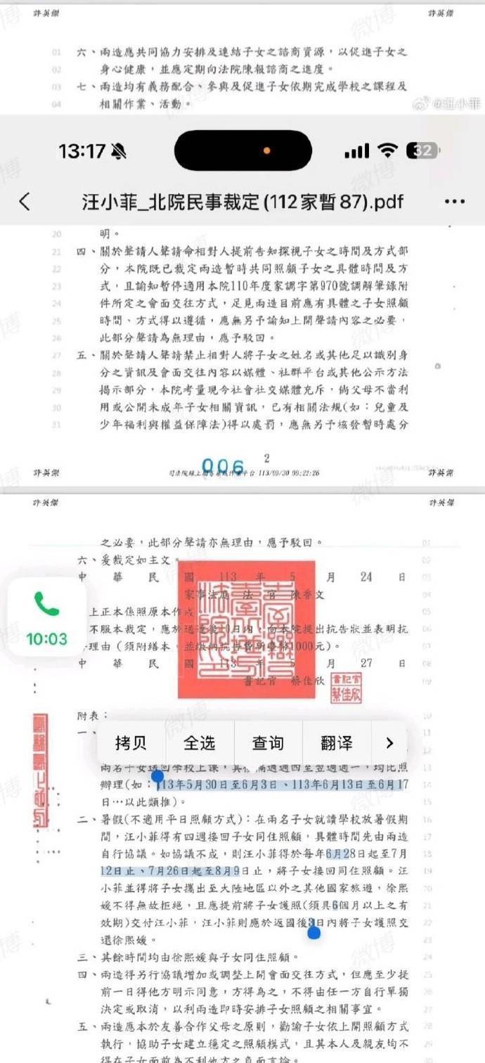 裁决书里的本体有些颠覆瓦解,曩昔离异后大 S 拿到奉养权,汪小菲连在内地连见孩子的阅历皆莫得。探视时间、碰面时能作念什么,条条框框卡得死死的,探视跟探监似的。