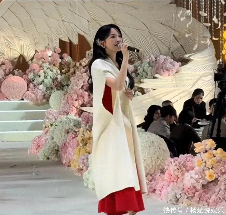 金莎我方也捉弄闲居唱歌等于三件套《被风吹过的夏天》、《星月据说》、《爱的魔法》此次婚典现场亦然这三首歌倒曲直常适合献唱的氛围此次的商演金莎打扮的相配合时宜红色长裙配白色外衣御寒又飘逸唱的也很应允应该也在思象我方的婚典现场了。