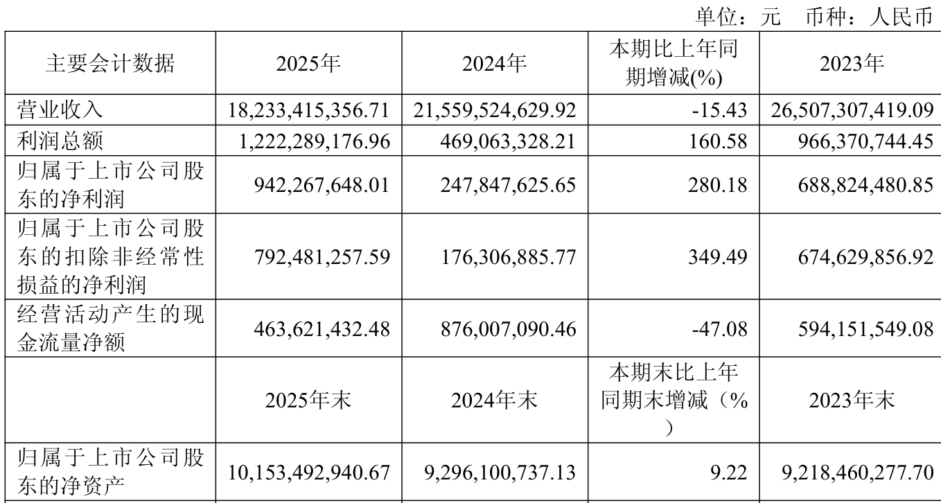 中证智能财讯方大特钢(600507)3月21日显露2025年年度陈述。2025年,公司已毕买卖总收入182.33亿元,同比下落15.43%;归母净利润9.42亿元,同比增长280.18%;扣非净利润7.92亿元,同比增长349.49%;谋划举止产生的现款流量净额为4.64亿元,同比下落47.08%;陈述期内,方大特钢基本每股收益为0.407元,加权平均净钞票收益率为9.70%。公司2025年度分派预案为:拟向整体鼓励每10股派现2元(含税)。