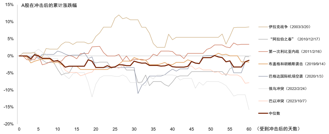 图表19:A股商场在地缘冲击后先跌后涨,平均60天足下复原跌幅