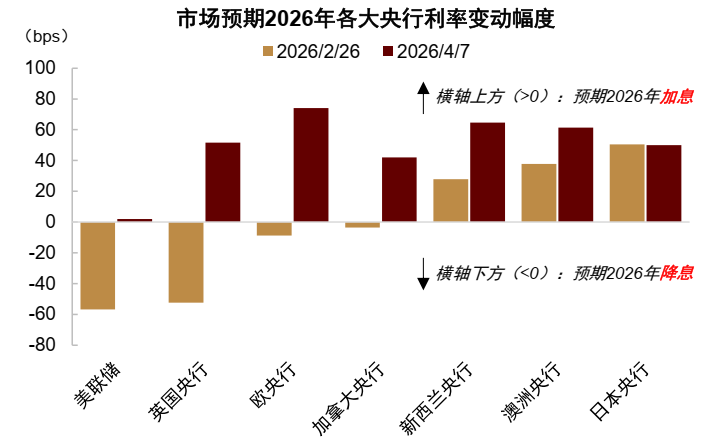 图表9:商场预期2026年寰球主要央行由降息逆转为加息