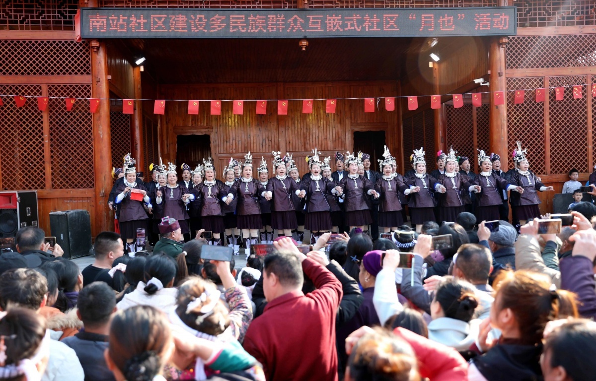文化互嵌,共鉴分享。文化认可是民族谐和之根、民族暖热之魂。在互嵌式社区中,应打造可参与、可分享、可不时的文化载体,鼓励各民族优秀传统文化在互鉴中孕育、在分享中统一,构筑中华英才共有精神家园。在南宁市望仙坡社区,维吾尔族本族与各族行家同过“三月三”、端午节,油茶配馕成为佳话。柳州市三江侗族自治县南站社区通过篮球赛、饱读楼议事、“月也”等面容,让各族习俗在新家园中延续传承,相互联系越走越近。卓绝各民族共有分享的中汉文化标志,从相互了解到相互认可,文化互嵌成为凝合各族心情的精神纽带。